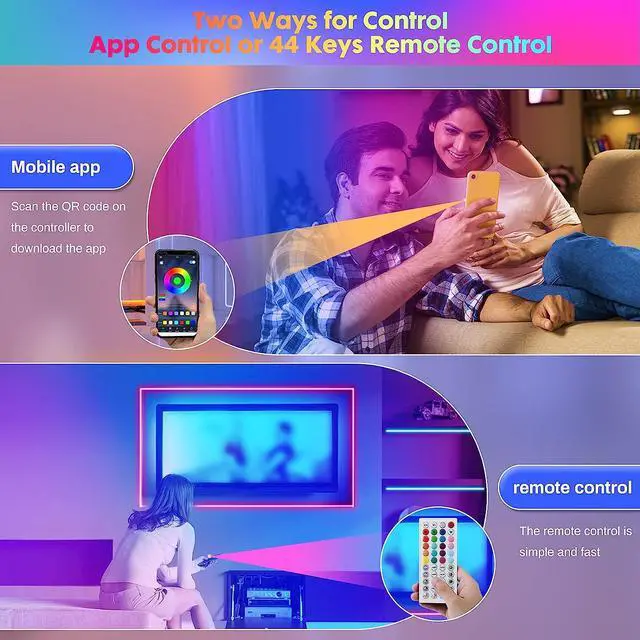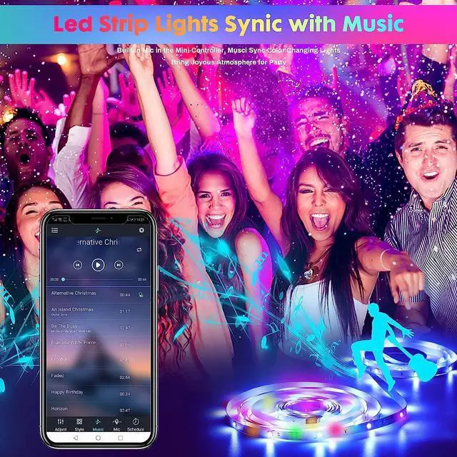 MUSIC SYNC: The strip lights has a smart music mode, lights color will change with the rhythm of the sound and music, sensitivity adjustable microphone. Applicable for create romantic, relaxed and party atmosphere