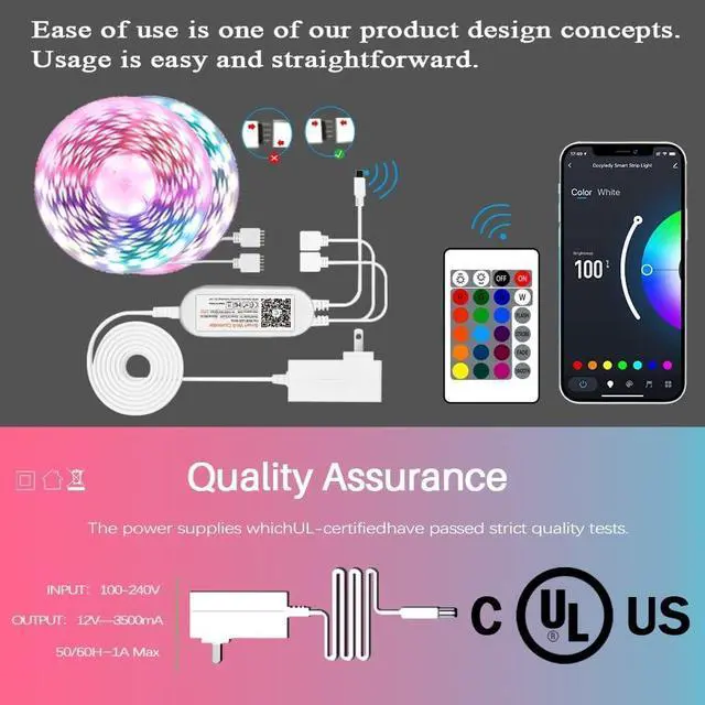 Are you worried about the led light strip will have lamp bead failure or SAFETY issues? We use fine chips that greatly reduce the chance of bead failure, and improve brightness and efficiency. Various quality control procedures have been implemented during manufacturing, and the safety of the product has been certified by UL and ETL