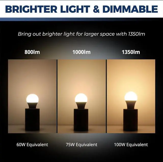 High Brightness: With 1350 lumen (100W Equivalent), these smart light bulbs bring out brighter white and colorful lights for larger spaces. Perfect for any occasion because the smart bulbs can also be dimmed via apps and voice Assistant whenever you want darker light to relax.
