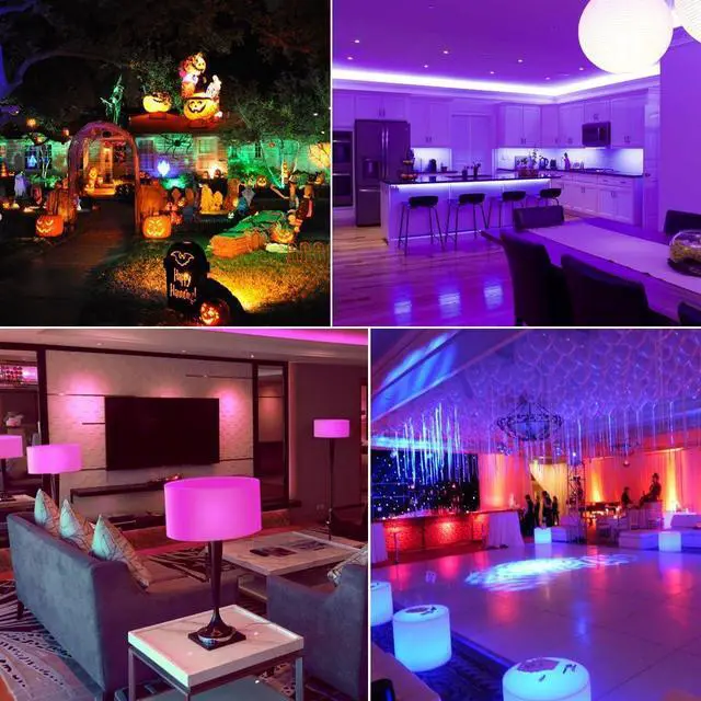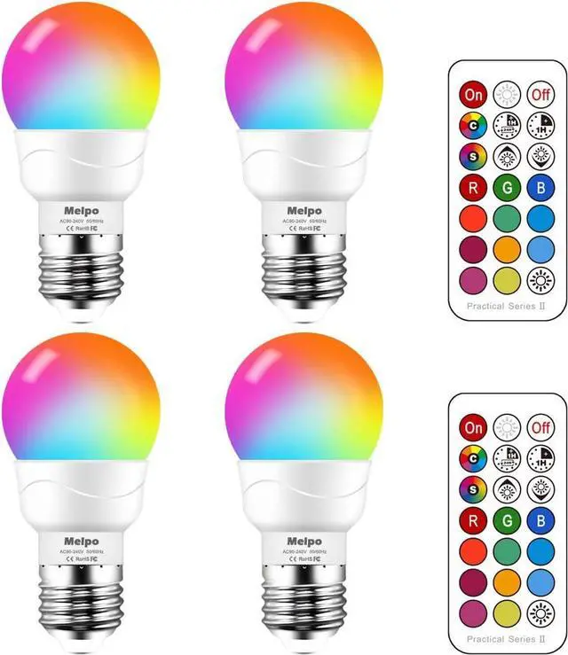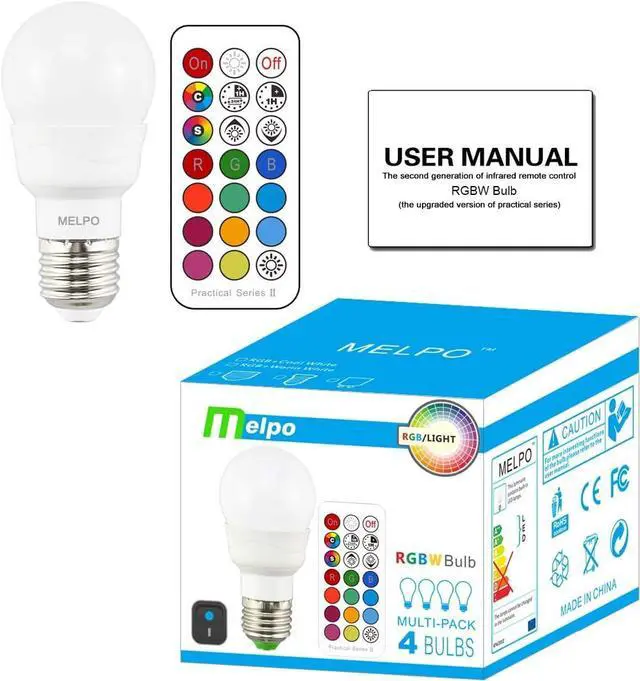 LED RGB light bulb with remote controller (included). Color changing light with 270 degree beam angle provides colorful mood light and bright illumination.
