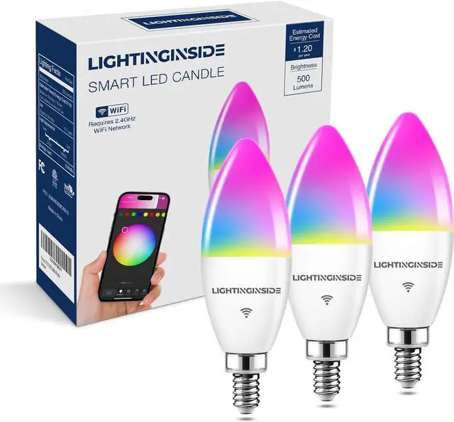 NO HUB REQUIRED: These candelabra smart bulbs are easy to set up with no hub required. All you need is a 2.4 GHz WiFi connection and the Smart Life App. These flicker-free E12 LED bulbs can be used in any E12 sockets for home or business light fixtures.