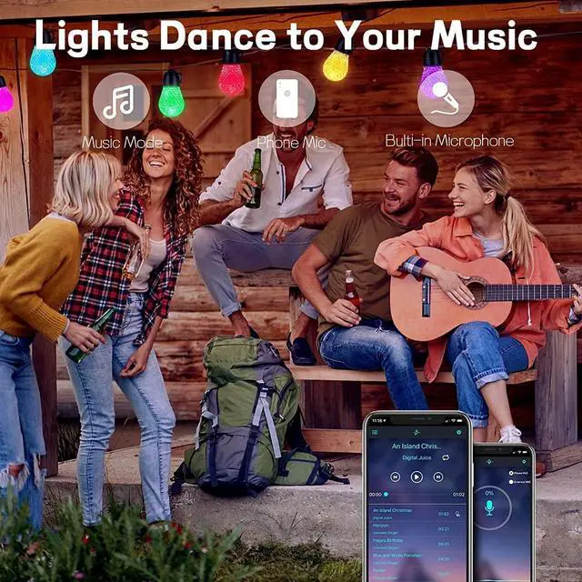 Music Sync Mode- Enjoy romantic evening, party, and family gathering in a beautiful romantic lit environment as the Patio Lights react in real time to your songs via the integrated mic. Light any Ambience for party, birthday, wedding, ball game, Christmas and other Holiday decoration.