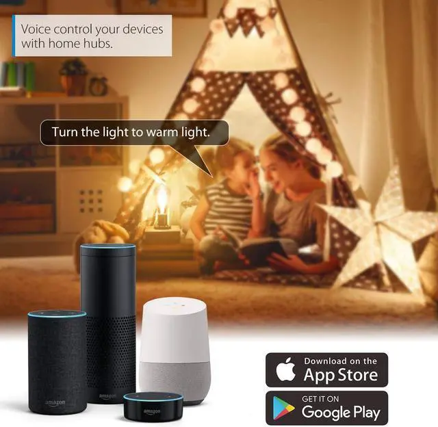 Voice Control Control your smart bulbs via your voice with Google Assistant and Amazon Alexa. Just give a voice command to turn on/off or dim/brighten your lights.