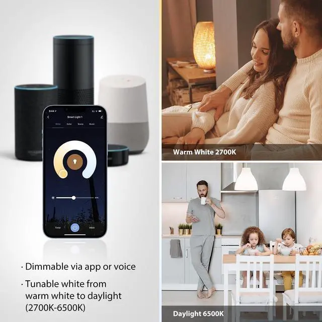 Set Schedules & Adjust AmbienceYou can set schedules to turn on /off your smart light automatically based on your routine. Sunrise/ sunset mode supported; Set the perfect illumination for any occasion. Set brightness, adjust from warm/ cool white(2700K-6500K).