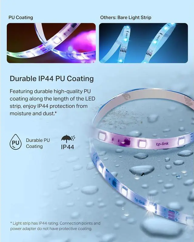 Protective Coating With Cuttable Design: The KL420L5 comes with a protective PU coating giving the light strip IP44 rated resistance to moisture and dust. This is ideal for settings such as the kitchen where moisture can be an issue for electronics. The LED strip light is highly durable and is designed to last. Easily stick the LED light strip along your TV, cabinet, bed frame, and more with the included 3M adhesive backing. You can also cut the strip to your desired length giving you freedom to work within your space.