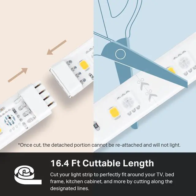 Versatile Smart Lighting: Measuring 16.4 ft. in length the KL420L5 smart LED light strip can add color to virtually any space. From the kitchen to the bedroom, add beautiful accent lighting to your spaces to add lighting to any room.