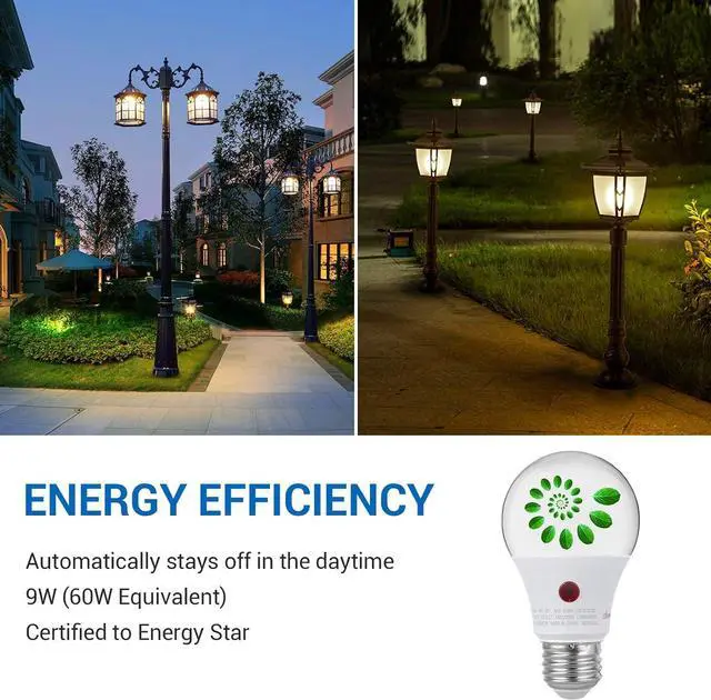 Dusk to Dawn LED Light Bulb With the built-in photocell light sensor, the dusk till dawn light bulbs will work only during the darkest hours of the day and will automatically switch themselves off in the morning; no need to turn on/off the light physically; suitable for indoor and outdoor use
