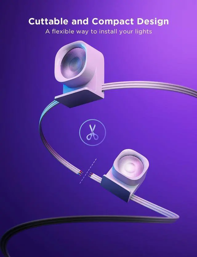 Multiple Modes: Use one-touch switching to find the most suitable lighting mode for your RGBIC string downlights, including scene modes, music modes, DIY modes, and more! The string lights is also cuttable for more possibilities
