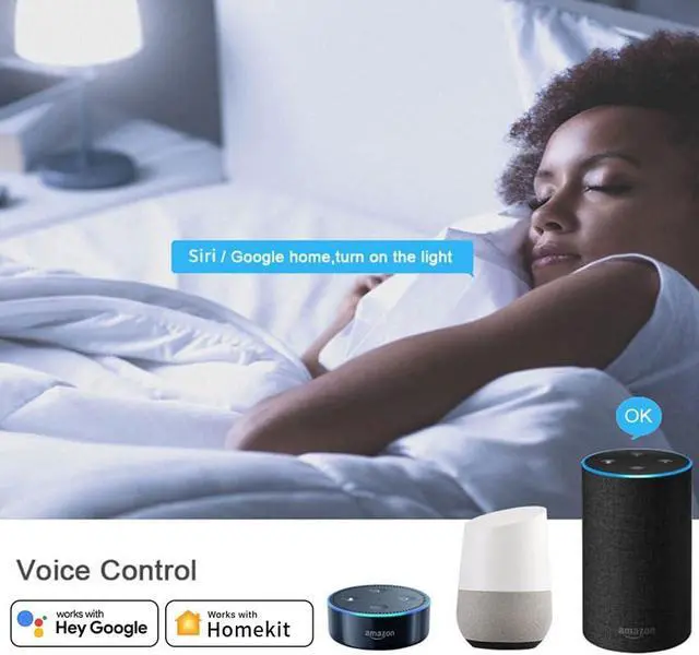 Voice Control Compatible with Apple Home (Homekit) Amazon Alexa and Google Assistant. Voice commands of smart device to turn on/off the light, and change the colors, lightness and the mode of lighting. (Alexa, change the color of the living room light to red)