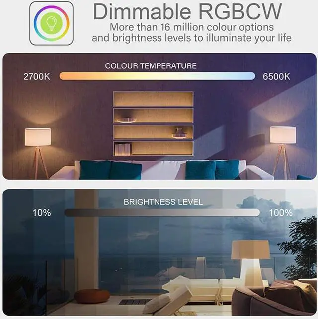 Energy Saving With LED technology, Smart Bulb will reduce energy consumption up to 80% compared with ordinary bulb without losing brightness or quality which saves a lot of money. The lifespan of our smart bulbs can approximately last 25, 000 hours. 12 months warranty.