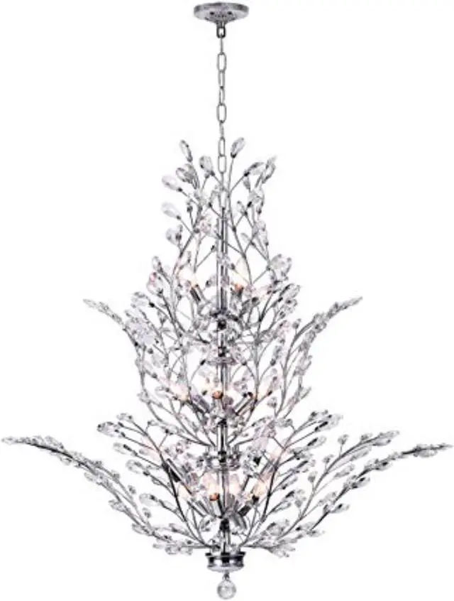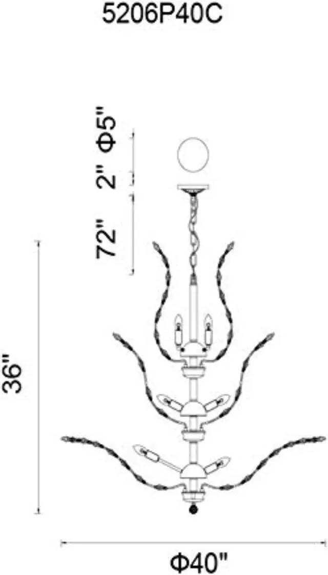Dimensions: H 36" x W 40" x D 40" - Maximum Height 156" - Chrome Finish - E12 Bulb Not Included - Indoor (DRY Location) - cETLus Approved - Includes Assembly Instructions and Hardware - Comapatible With Standard Low Voltage Dimmer - Comes With 120" of chain.