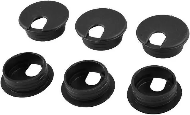 Unique Bargains 6 Pcs Home Office Desk Computer Round 35mm Mount Cable Cord Grommet Hole Black