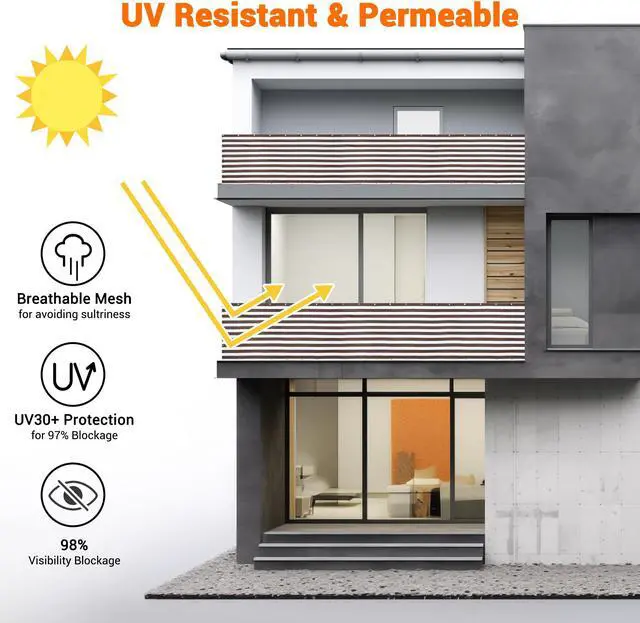 - UV Resistant & Permeable - Made of 100% brand-new HDPE material with UV30+ protection, the privacy screen provides up to 97% harmful sunray blockage to prevent sunburn, along with breathable mesh design to facilitate free circulation of air for reduced sultriness and added comfort