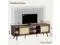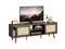 The Rattan TV Stand sized at 63L x 13.75W x 18.75H, it fits 65/70/75 inch TVs. The retro wood finish paired with rattan-adorned cabinet doors infuses your space with a bohemian charm, effortlessly harmonizing with a variety of interior styles., while adding its unique touch of elegance. It includes two storage compartments, open shelves, and sliding doors for storage. Made of high-quality particle board with six sturdy wood legs, its stable and easy to clean. With a 6.2" floor clearance, its robot vacuum-friendly.