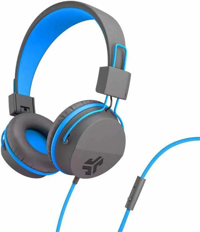 JLab JBuddies Studio On-Ear Kids Wired Headphones, For School & Travel, 3.5mm Plug, Kid Safe, Studio Volume Safe, Volume Limiter, Folding, Adjustable, Noise Isolation, with Mic, Graphite/Blue