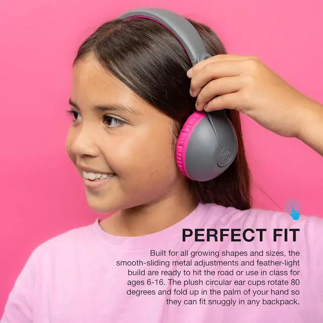 JLab JBuddies Studio 2 Two-In-One Wireless & Wired On-ear Kids Headphones, Bluetooth, Volume Safe, with Microphone, Pink/Gray