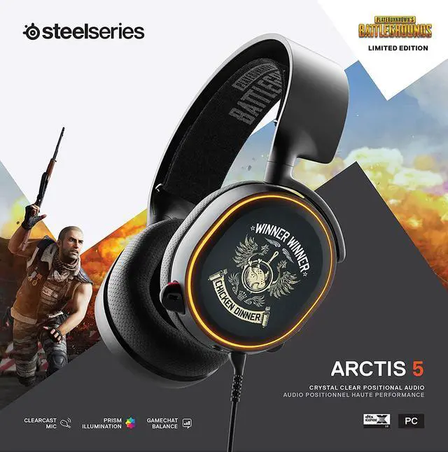 The Arctis 5 PUBG Limited Edition is a USB-enabled PC gaming headset with DTS Headphone: X v2. 0 surround sound, Prism RGB illumination, and a ClearCast noise-cancelling microphone.