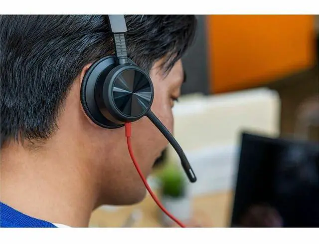 PREMIUM CORDED UC HEADSET | BENEFITS Block disruptions from close talkers and environmental noise with the flexible, noise-canceling microphone enhanced with Acoustic Fence technology. Optimize audio comfort and quality with advanced hybrid active noise canceling (ANC) by choosing between three settings. Prevent interruptions by coworkers with the on-call indicator that lets other know when you're on a call. Audio is always exceptional for both calls and media with enhanced bass response. BLACKWIRE 8225Is background noise affecting productivity? Help teams keep noise out and focus-with the Poly Blackwire 8225 premium headset. Conversations stay clear and private with the flexible, noise-canceling microphone enhanced with Acoustic Fence technology.