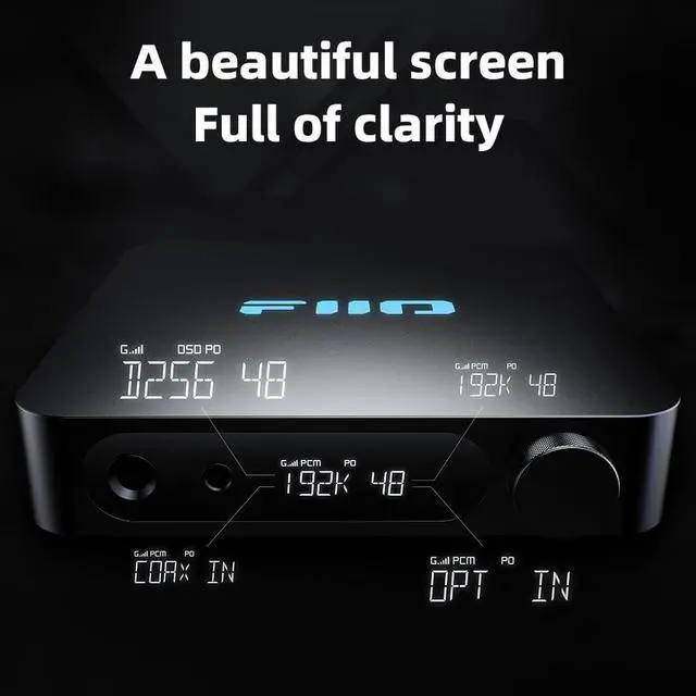 The FiiO logo is illuminated with RGB lighting, giving you a quick way to identify the sampling rate of the current audio being played back. Six LED strips work in conjunction with a carefully placed reflective film and parts of the body designed to reflect light to make the light show uniform and elegant. You can customize brightness, colour, and patterns via the multi-function knob.
