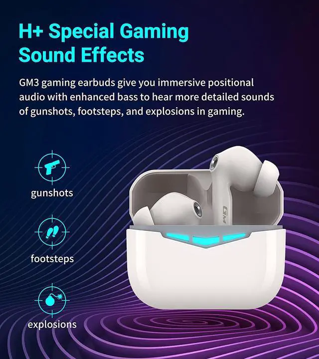 ?Recommended by JD Gaming Professional Team? With GM3 true wireless earbuds, the enhanced low frequency of footstep sound positioning will not hide away and the specially tuned gunfire sound
