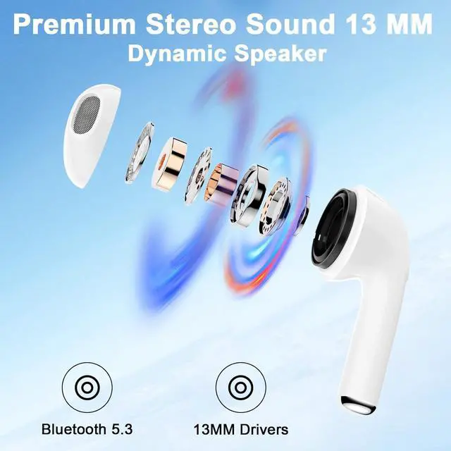 Smart Touch Control and ergonomics: The earphones wireless Bluetooth feature sensitive touch controls, tap the earphones for play/pause, volume, switch song, answer/end calls and voice assistant activation. Bluetooth earbuds are ergonomically designed, the ultra-light and ergonomic design allows you to wear them for a long time without feeling uncomfortable.