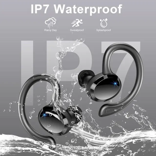 Ergonomic Comfort Sports Design: The running headphones included soft ears hooks are specially designed, which can fully fit your ears contours and maximally guarantee a comfortable wearing experience without falling out. Besides, equipped with 3 pairs of different sizes of spare ear caps for options. Even do strenuous exercise, the earbuds will not fall off. IP7 waterproof can effectively prevent the sports earphones from the damage of sweat and raindrops, made for sports/workout/running etc.