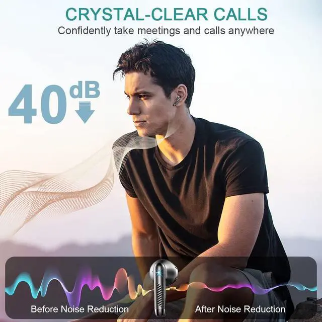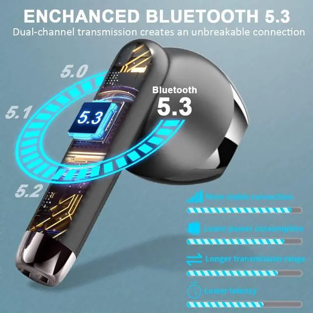 Extremely Fast Pairing: Powered by twin bluetooth 5.3 technology, these noise cancelling wireless earbuds support binaural synchronous transmission, the connection speed is increased by 100% and ensure stable connection and super-low power consumption. Just take 2 bluetooth earbuds out from the charging case, and they will connect each other automatically and then only one step easily setting to pair the earbuds.