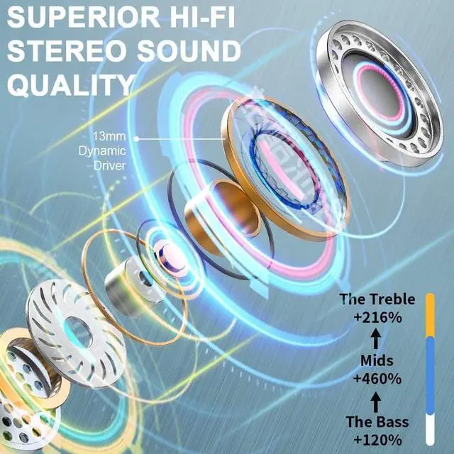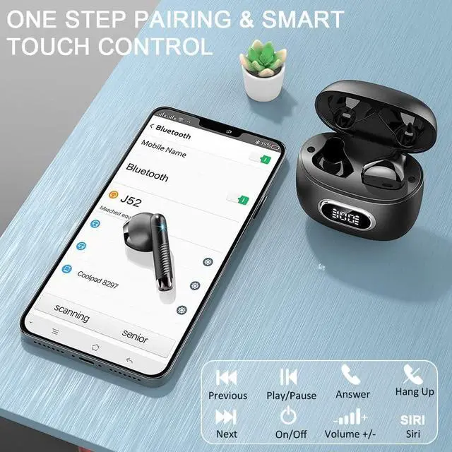Immersive Stereo Sound and HD Call: J52 wireless headphones bluetooth adopt 13mm graphene composite driver which have a wider soundstage, detailed trebles and well-defined bass(60%+). Ear buds earbuds bluetooth with 4 mic which used ENC technology strongly eliminating external noise which pick up & amplify your vocals even in a crowded space. Earbuds wireless bluetooth make your communication are now clearer than ever.