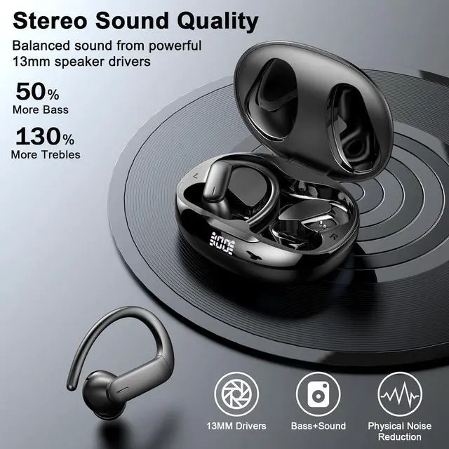 Hi-Fi Stereo Sound Quality & Clear Call: Equipped with 13mm dynamic driver unit, Bluetooth earbuds deliver sound with strong bass, clear mids, and bright treble. Experience high-fidelity sound reproduction that brings every note and detail to life, enhancing your music listening experience. The built-in microphones ensure high-quality call performance by isolating your voice from surrounding noise. Enjoy uninterrupted conversations with superior clarity, regardless of your location.