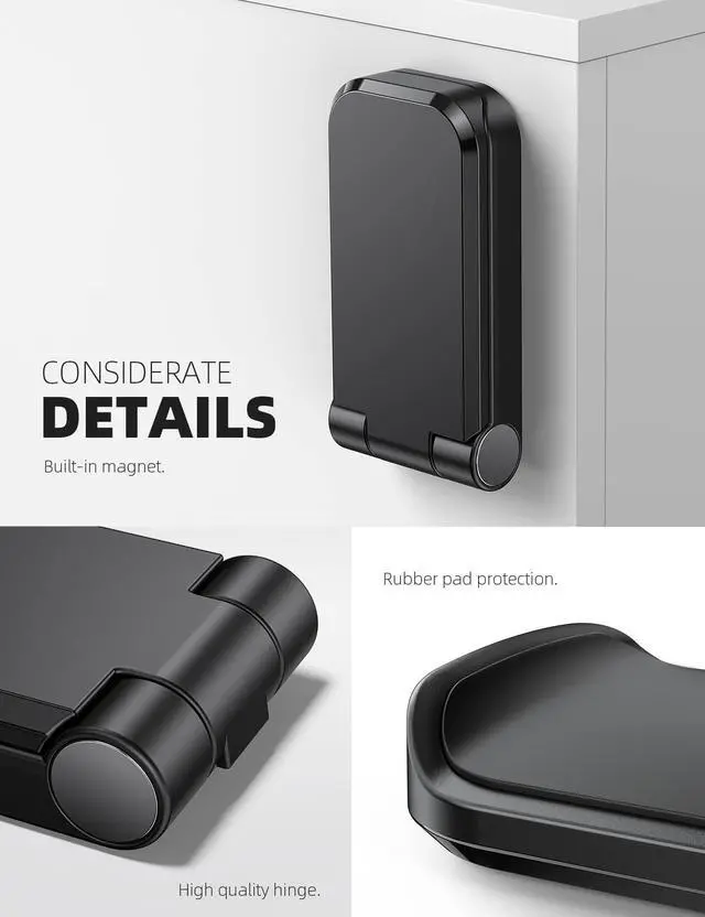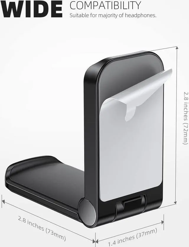 Magnetic Design: The headset holder has a magnet so it can be folded up by magnetic force when it is not in use. Great for space-saving. The headphone arm is covered with soft rubber pad to protect your headset from slipping and scratching, and will not damage your headphone.