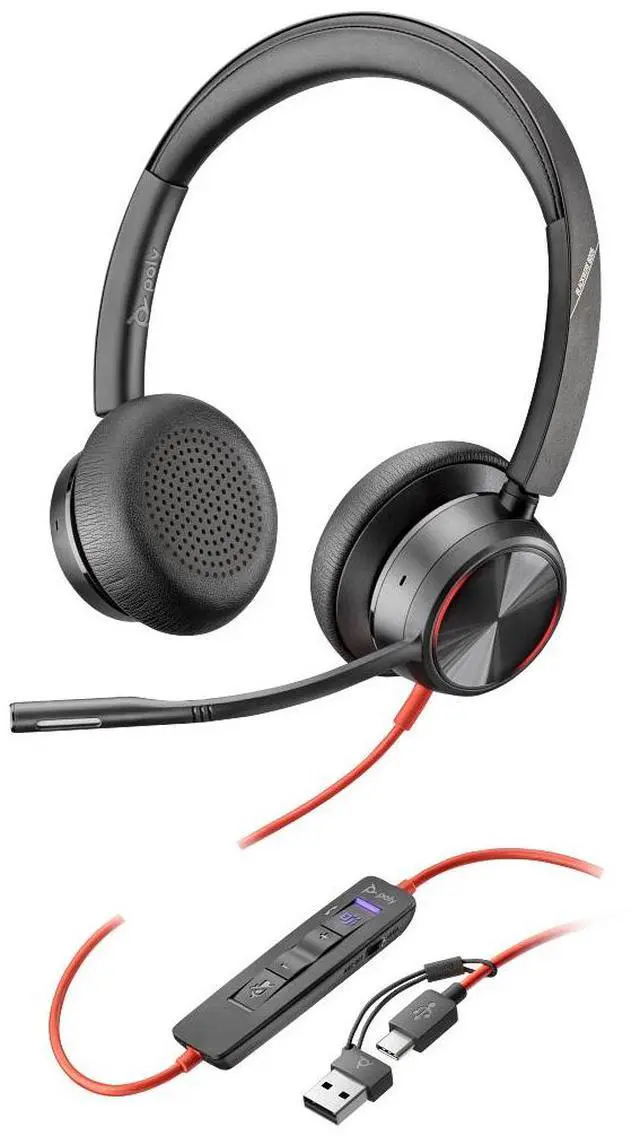 Poly Blackwire 8225 Stereo Microsoft Teams Certified USB-C Headset + USB-C/A Adapter - Microsoft Teams Certification - Stereo - USB Type C - Wired - 32 Ohm - On-ear - Binaural - Ear-cup - 7.10 ft Cabl