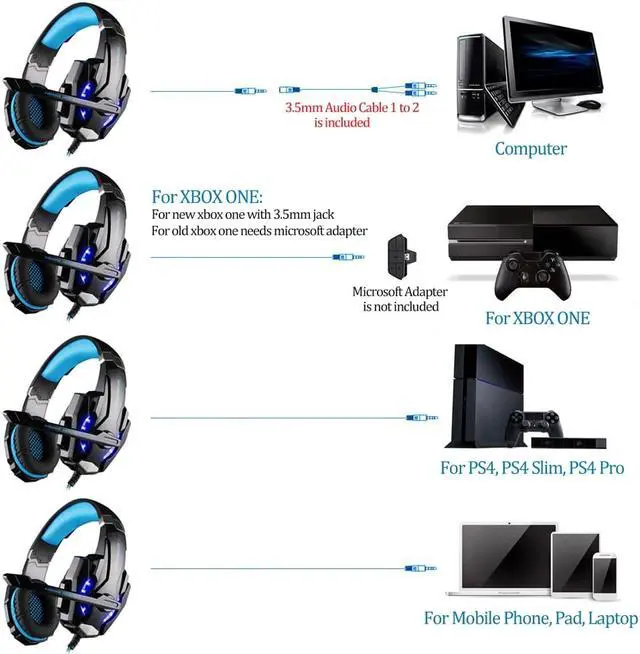 Package List: 1 * KOTION EACH G9000 Gaming Headset 1 * 1 to 2 Audio Cable