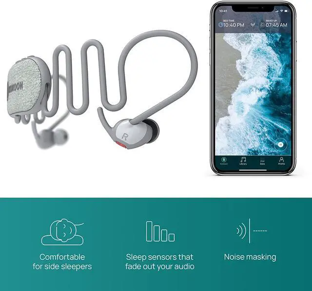 SLEEP HEADPHONES: Escape into a Kokoon with Nightbuds. When paired with the MyKokoon app their noise-masking technology helps reduce external disturbances and their sleep-sensors adjust your audio and introduce white noise as you drift off to sleep. Theyre the ultimate sleep aid for use in bed or when relaxing especially for side sleepers.