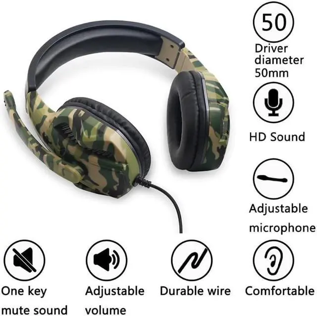 Stereo Headphones Camouflage Deep Bass Headphones with Microphone PS4 / PS3 / For Computer Switch Game Player Headphones