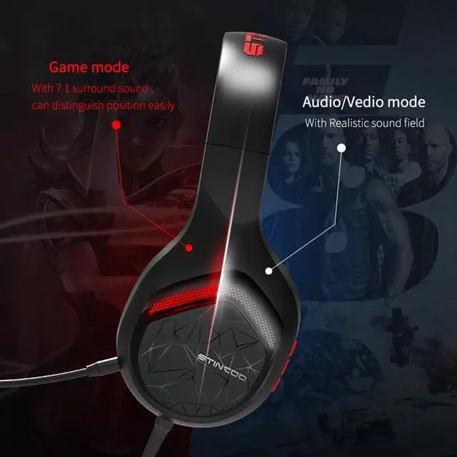 LED Light Breathable Earmuff Game Mode Earphone with Mic