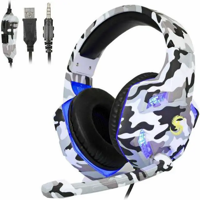 The stereo gaming headset with a 3.5mm connector Audio input for PlayStation 4/mobile phone/tablet PC/laptop PC, and a 3.5mm 1 to 2 jack cable for desktop computer.