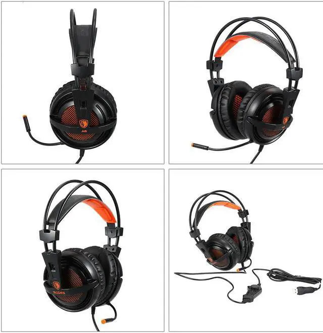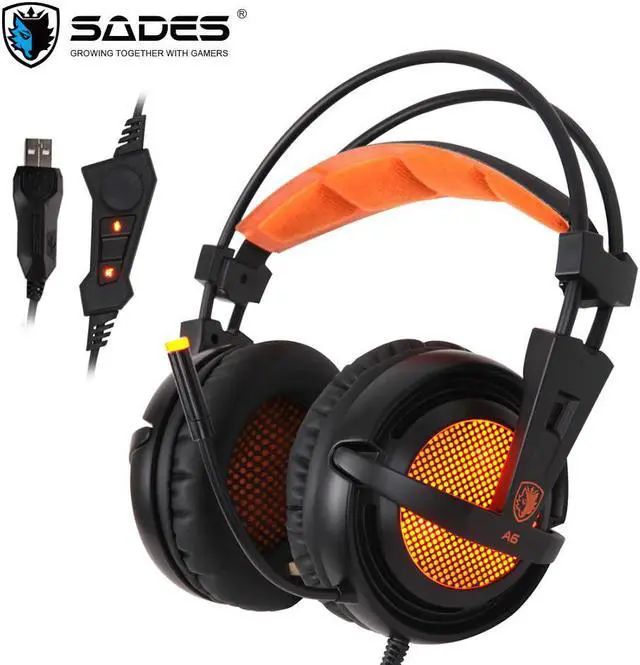 A6 USB 7.1 Stereo Wired Gaming Headphones Game Headset Over Ear With Mic Voice Control For Laptop Computer Gamer