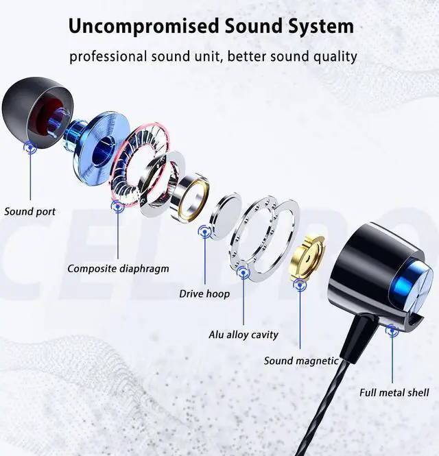 Anytime and anywhere, quietly listen to the music, Hybrid earphones structure to ensure sound quality.