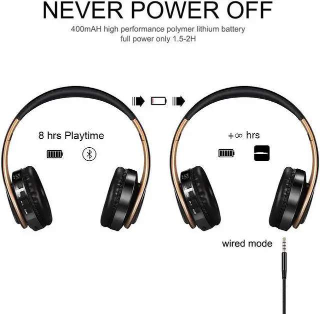 2.Also can be used as wired headphone . 3.5mm audio jack, provides a simple wired connection of a variety of devices without Bluetooth.