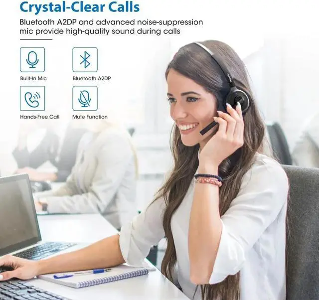 BH231 Bluetooth 4.1 Headphones With Mic Charging Base Wireless Headset For PC Laptop Call Center Office 18H Talking Time