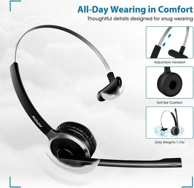 Featured with lightweight design(1.7oz), adjustable headband and soft ear cushion, the headset enables you to