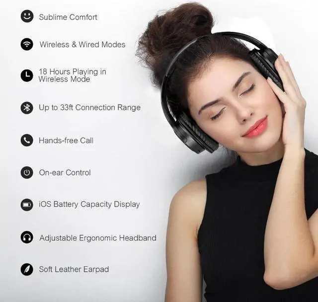 This is not only a Bluetooth headset, but also a wired headset. With the included cable, you can still enjoy favorite music when the battery runs low.