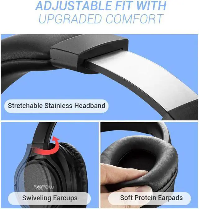 Memory-protein ear cushions and adjustable headband allow for comfortable all day listening.