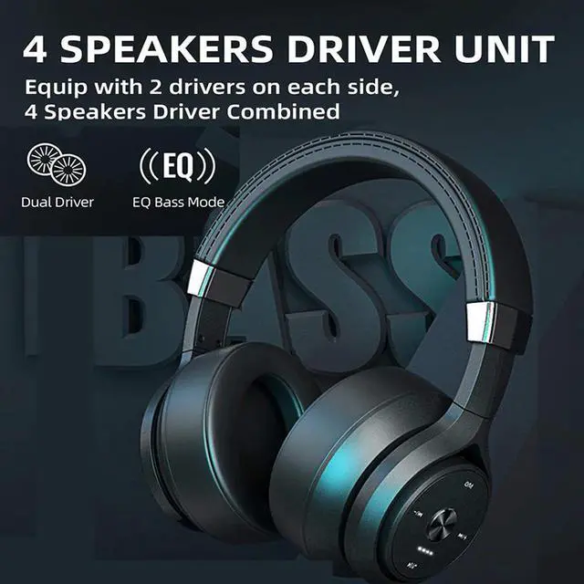 1.Dual Driver & EQ Bass: Every side equip with improved dual large driver, altogether 4 speakers combined with EQ bass mode. Not only make sure powerful output and produce HIFI stereo bass sound, but also bring you into a similar music perform live.