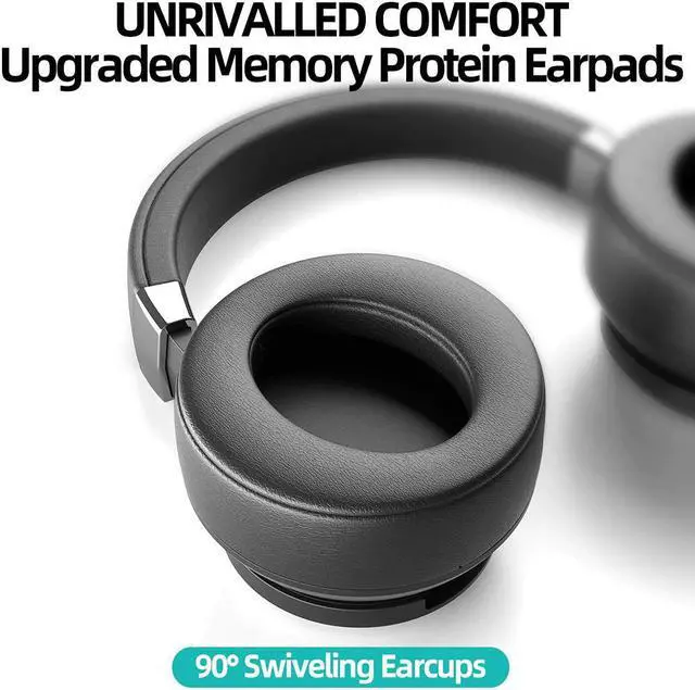 3.Comfortable & Proprietary Design: Upgraded Over ear protein earpads, adjustable headband bring you more comfort, durability and enjoyment during your music world. Lightweight, unique design and 90° swiveling earcups can reduces pressure and fit to your ears perfectly. Gentle Reminder: Please take the headphones off every 2-3 hrs to get your ears relax.