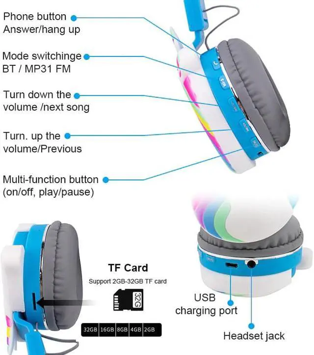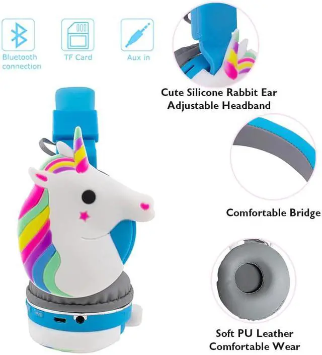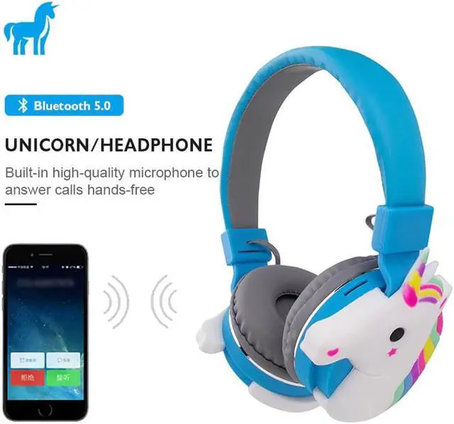 Children's Unicorn Headphone Bluetooth 5.0 Wireless Headphone with Microphone, Children Gift Mobile Phone MP3 Portable Headphone
