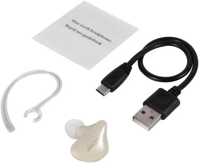 Features: 100% brand new and high quality Small and light, stealth design.Can talk, listening to music Function: answer / end, reject, call iting, replay, mute, call registration, multi-point connection, listening to music pause / play Best choice for yourself or your friend. You will not be disappointed! Specifications: Brand Name: Model NO:X1 Color:Black, White, Champagne color Battery capacity: 60mAh Charging power supply: AC input 110-240V DC output 5V Call time: 4.5 hours Charging time: 1-2 hours Noise reduction: CVC6.0 Operating range: 10 meters Charge interface: Micro-USB Chip: CSR4.0 Bluetooth version: V4.1 Voice: Supported Supported protocols: HFP HSP A2DP AVRCP APTX Net weight: 15g Package weight: 45g Pruduct size (L x W x H): 27 x 17 x 30mm Package size (L x W x H): 67 x 67 x 37mm Packing list: 1 x Wireless Bluetooth Earphone 1 x Cable 1 x Plastic Hook 1 x User manual Notes: 1. Due to the difference between different monitors, the picture may not reflect the actual color of the item. We guarantee the style is the same as shown in the pictures. 2. Due to personal measurement technique is different, there may be 1-3 cm error of the physical.Thank you!