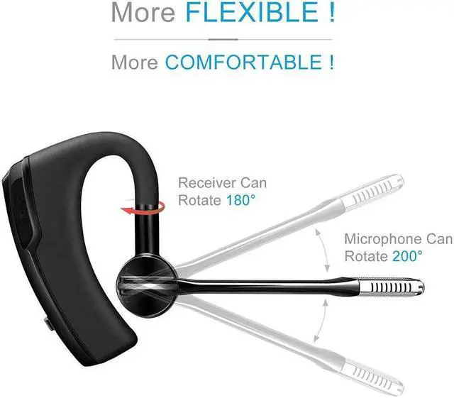 3.Ultralight and comfortable design, ergonomically-shaped in-ear plugs and ear loops brings comfortable and no heavy feeling even after long-time wearing The 180 degrees flip-boom arm allows to adjust the angle and fit this headset in right or left ear.