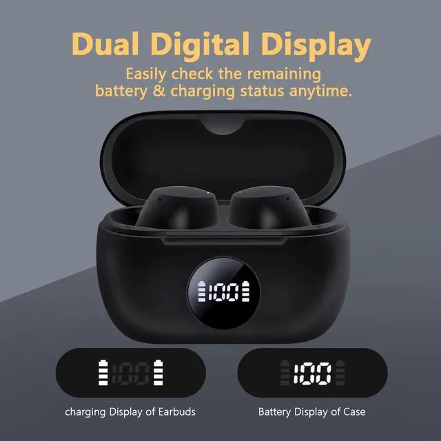 Play Time: The digital LED power display on the outside of the case facilitates easily manage of power, and the 400mAh battery capacity of the charging case provides five full charges for both 40mAh Bluetooth earbuds, each lasting play to five hours on a single charge. Perfect for your daily commute, sports, phone calls.