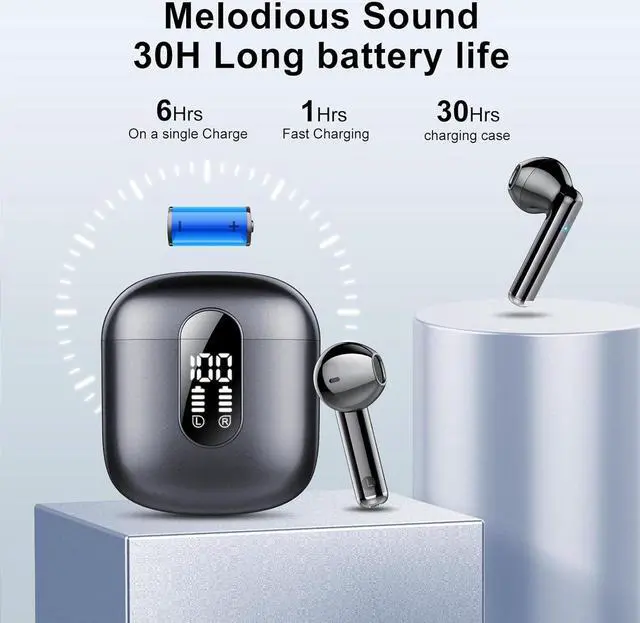 Say Goodbye to Frequent Recharging: These Ear buds bluetooth offer a remarkable 6-7 hours of top-notch audio playback on just a 1.5 -hour charge. Plus, the accompanying charging case delivers an extra 4 charges, delivering a whopping 30 hours of total playtime. These headphones also come with a handy smart LED display, making it effortless to keep tabs on the battery levels for both the earbuds and the charging case, ensuring you always know when it's time to recharge.
